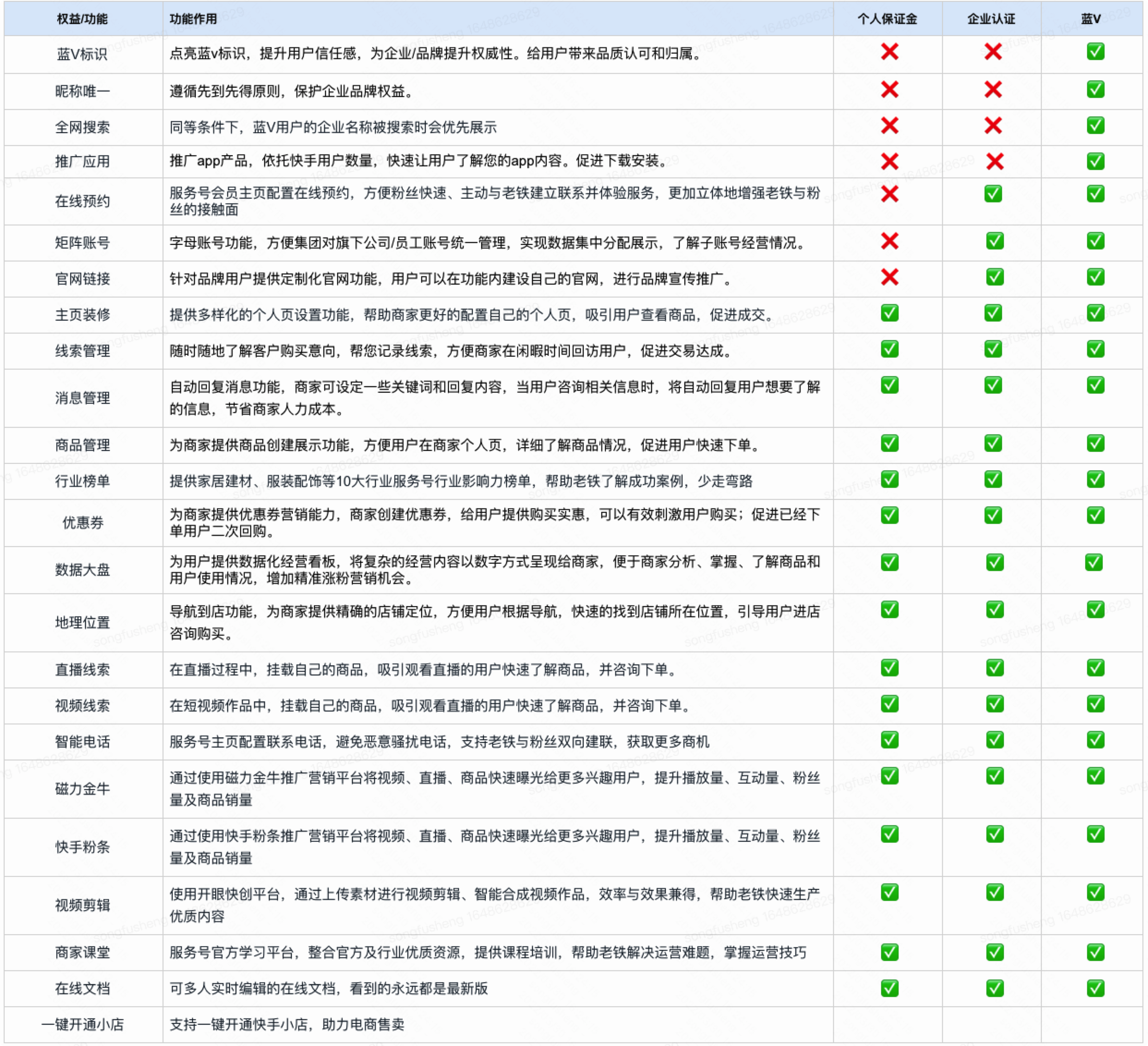 商家/机构和个人实名认证完毕后,可享受服务号的免费功能权益。其中,商家/机构可自主付费点亮蓝v,个人如想点亮蓝v需要加入商家/机构的主体。
