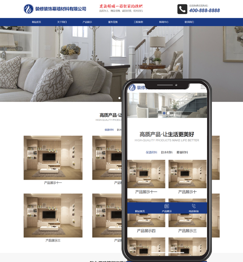 PbootCMS内核开发的网站模板,该模板适用于装饰装修网站、幕墙材料网站塑胶板材网站、pc板材网站等企业,当然其他行业也可以做,只需要把文字图片换成其他行业的即可; 自适应手机端,同一个后台,数据即时同步,简单适用!附带测试数据!