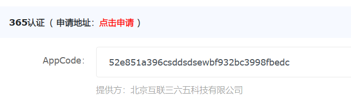 上图中,我们只使用【北京互联三六五科技有限公司】这家公司提供的API接口。