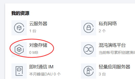 点击进入【对象存储】管理页面,如下图: