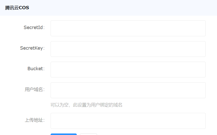1、进入您网站后台【腾讯云COS】插件管理界面,我们需要填写几项参数,如下图: