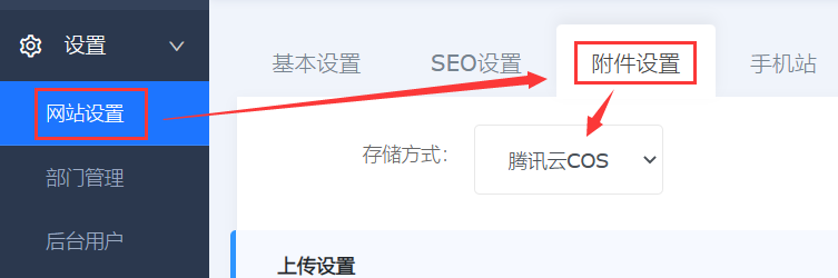 在您的网站后台左侧【设置】菜单【网站设置】中,找到【附件设置】