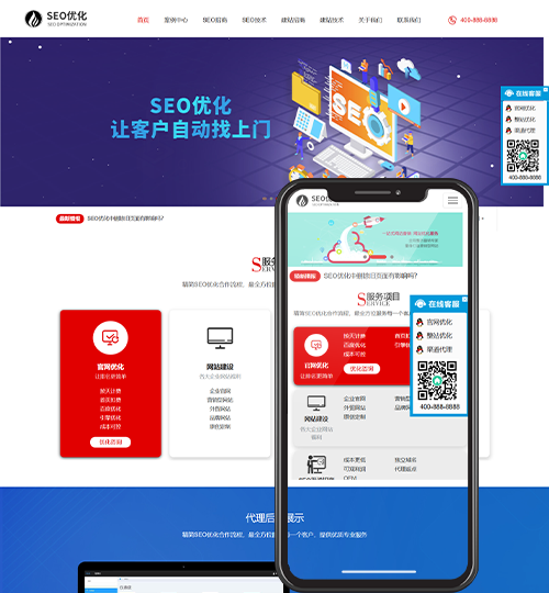 PbootCMS内核开发的网站模板,该模板适用于优化排名网站、seo公司网站等企业,当然其他行业也可以做,只需要把文字图片换成其他行业的即可; 自适应手机端,同一个后台,数据即时同步,简单适用!附带测试数据!