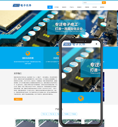 网站模板,该模板适用于电子元件网站、电路板网站等企业,当然其他行业也可以做,只需要把文字图片换成其他行业的即可;