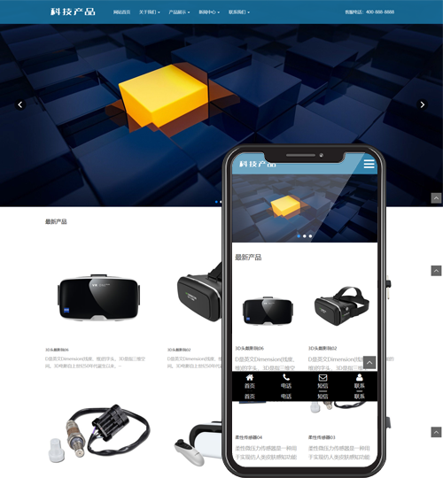 (自适应手机版)响应式科技产品传感器类网站pbootcms模板 html5蓝色智能电子产品网站源码下载